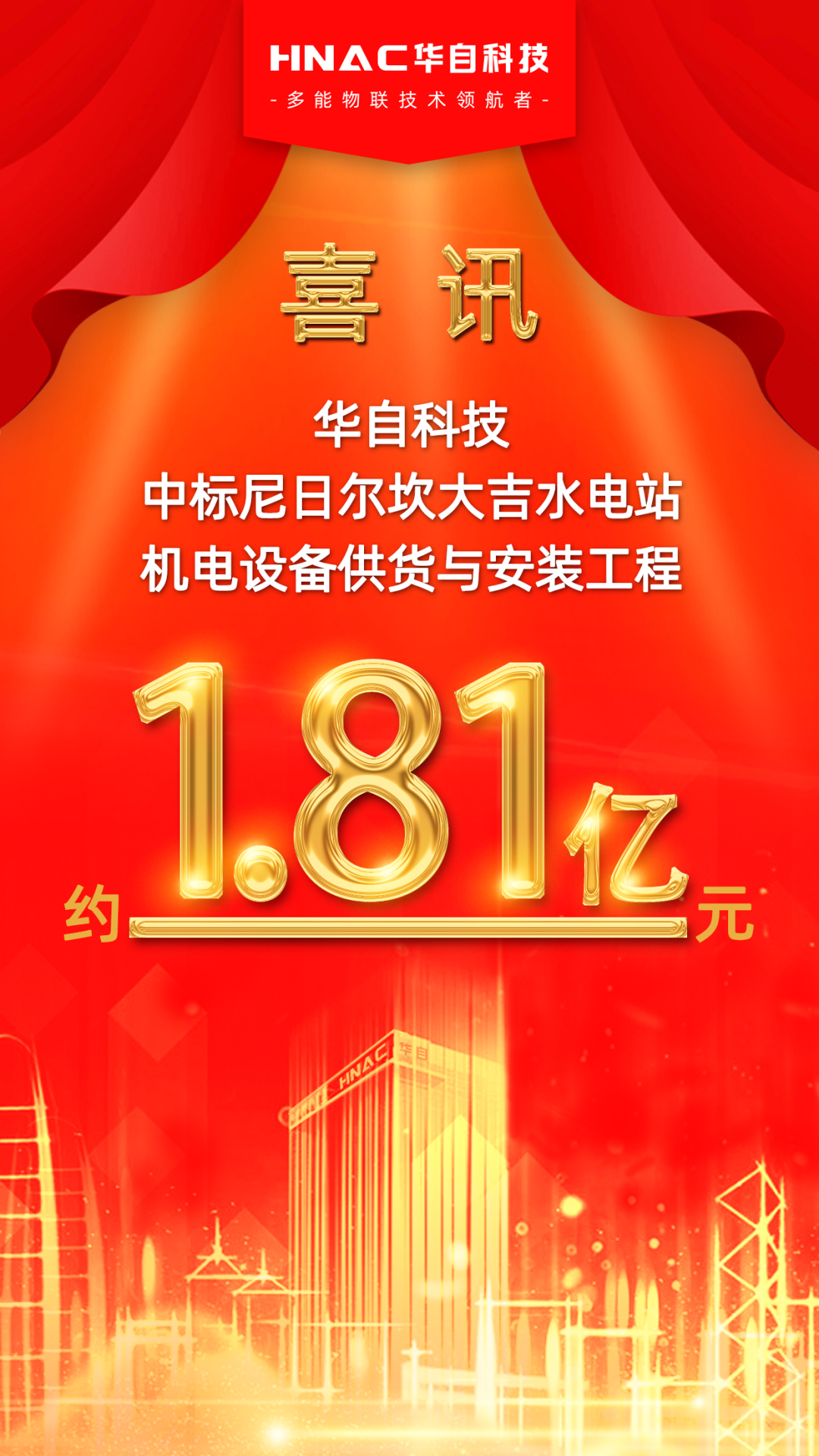 近日,公司收到中国葛洲坝集团国际工程有限公司发出的《中标通知书》,确认米兰官方网页版-米兰MiLan(中国)科技为尼日尔坎大吉水电站机电设备供货与安装工程的中标单位,中标金额为28,134,276.15 美元(折合人民币约18,120.72 万元)。