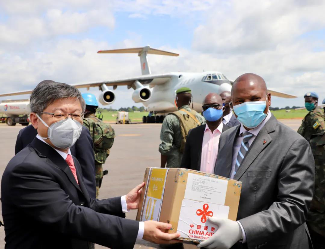 2020年3-6月 ,米兰官方网页版-米兰MiLan(中国)科技响应号召,踊跃参与抗疫物资捐赠,图为中非总统图瓦德拉赴机场迎接中国政府第二批援中非抗疫物资(点击阅读原文)