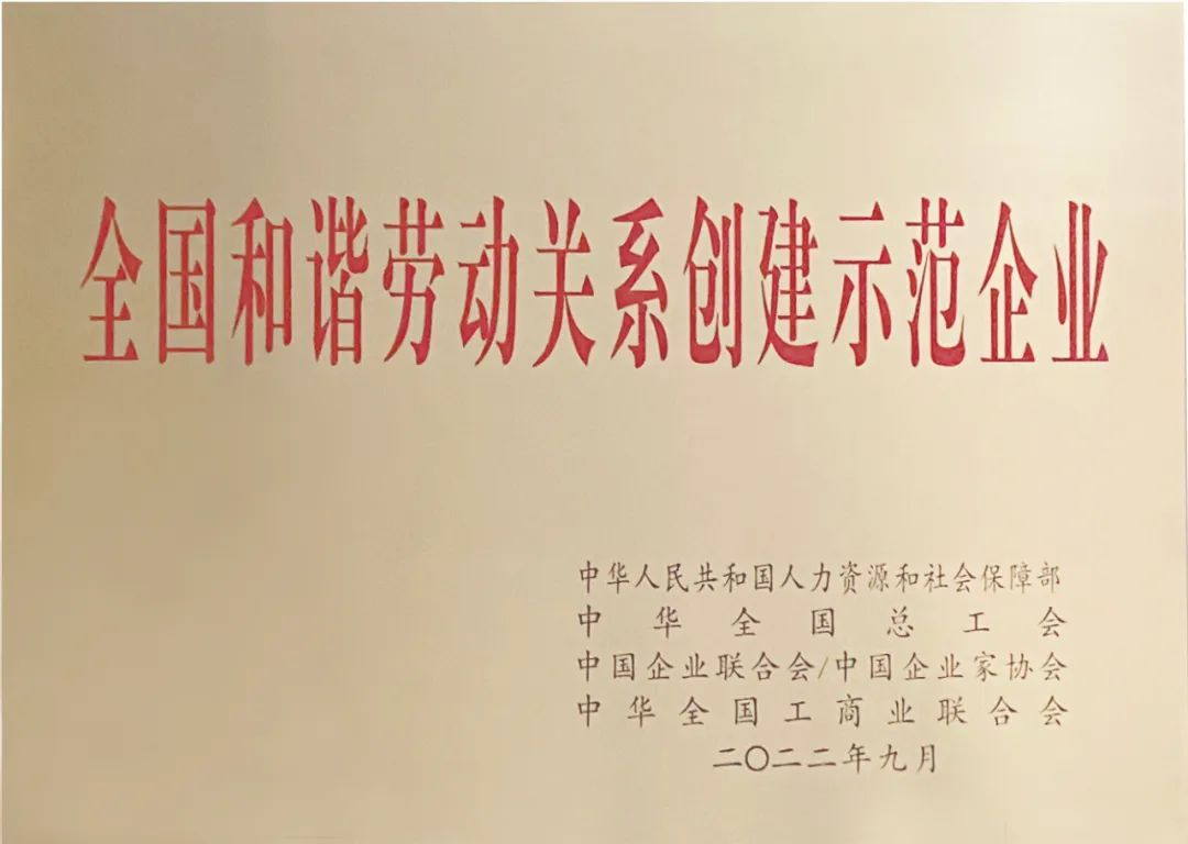 近日,全国和谐劳动关系创建示范经验交流会以电视电话会议形式在北京召开。人社部、全国总工会、中国企业联合会/中国企业家协会、全国工商联命名350家企业为“全国和谐劳动关系创建示范企业”,命名50个工业园区为“全国和谐劳动关系创建示范工业园区”。米兰官方网页版-米兰MiLan(中国) 被命名为“全国和谐劳动关系创建示范企业”。
