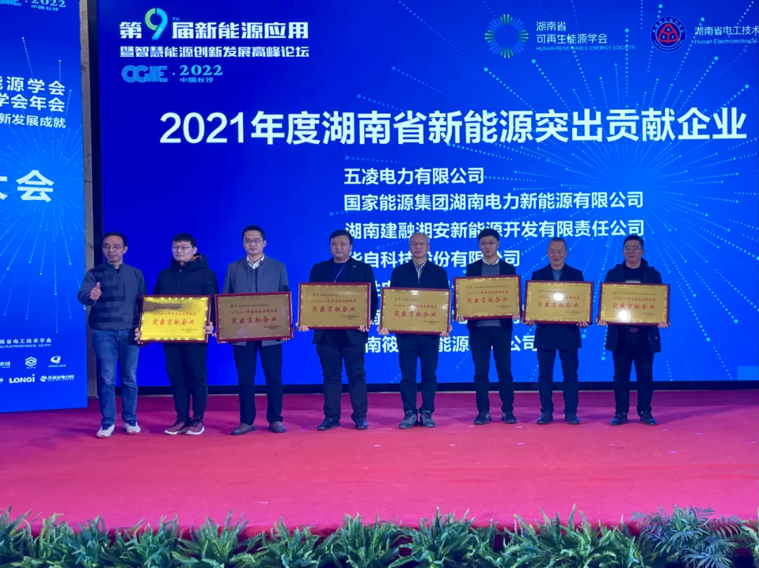 公司荣获“2021年度湖南省新能源突出贡献企业”称号
