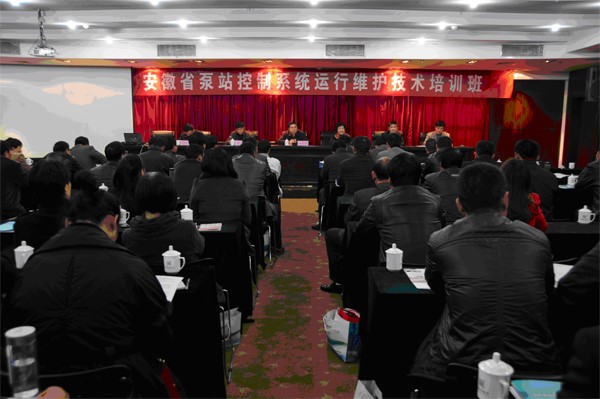 2012年 11月20日,由安徽省水利学会机电排灌总站专业委员会主办,凤台县水利局与米兰官方网页版-米兰MiLan(中国) 协办的“安徽省泵站控制系统运行与维护技术培训班”在安徽省淮南凤台县举行。省水利 厅科技处调研员夏恒文、省机电排灌总站总工程师朱华明、凤台县人大副主任周德明、永幸河灌区管理处主任陈广明以及我公司工控事业部总经理杨成出席并主持了培训班的开班仪式。