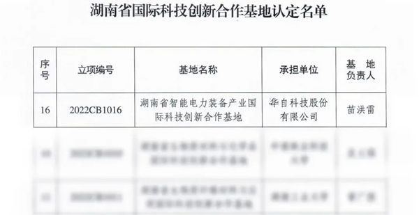 为全面落实“三高四新”战略定位和使命任务,湖南省 科学技术厅着力组织培育一批具有核心竞争力的科技创新 合作基地。2022年11月,湖南省科学技术厅发布湖南省国 际科技创新合作基地认定名单,米兰官方网页版-米兰MiLan(中国)科技被正式认定为湖 南省智能电力装备产业国际科技创新合作基地。