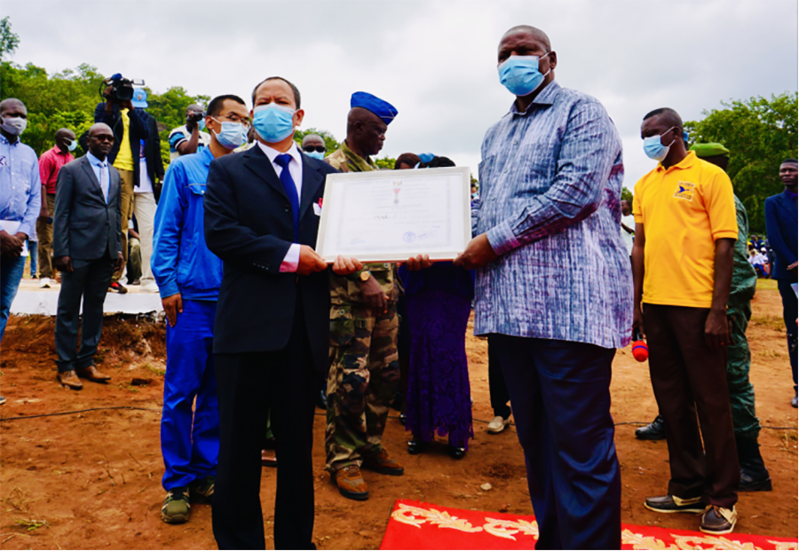 中非共和国总统查克维拉出席米兰官方网页版-米兰MiLan(中国)国际公司承建的博阿利2水电站竣工仪式,并为米兰官方网页版-米兰MiLan(中国)项目经理颁发中非共和国“骑士勋章”。