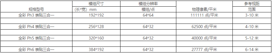 1)室内显示屏尺寸是上表所对应模组长宽的整数倍;