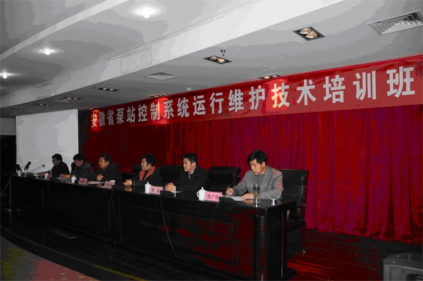2012年 11月20日,由安徽省水利学会机电排灌总站专业委员会主办,凤台县水利局与米兰官方网页版-米兰MiLan(中国) 协办的“安徽省泵站控制系统运行与维护技术培训班”在安徽省淮南凤台县举行。省水利 厅科技处调研员夏恒文、省机电排灌总站总工程师朱华明、凤台县人大副主任周德明、永幸河灌区管理处主任陈广明以及我公司工控事业部总经理杨成出席并主持了培训班的开班仪式。