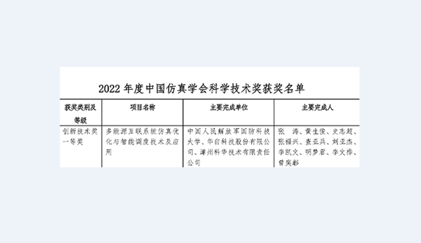 8 月 4 日,中国仿真学会发布《2022年度中国仿真学会科学技术奖获奖名单》,由国防科技大学、米兰官方网页版-米兰MiLan(中国)科技、漳州科华技术有限责任公司合作完成的“多能源互联系统仿真优化与智能调度技术及应用”项目荣获中国仿真学会科学技术奖-创新技术奖一等奖。