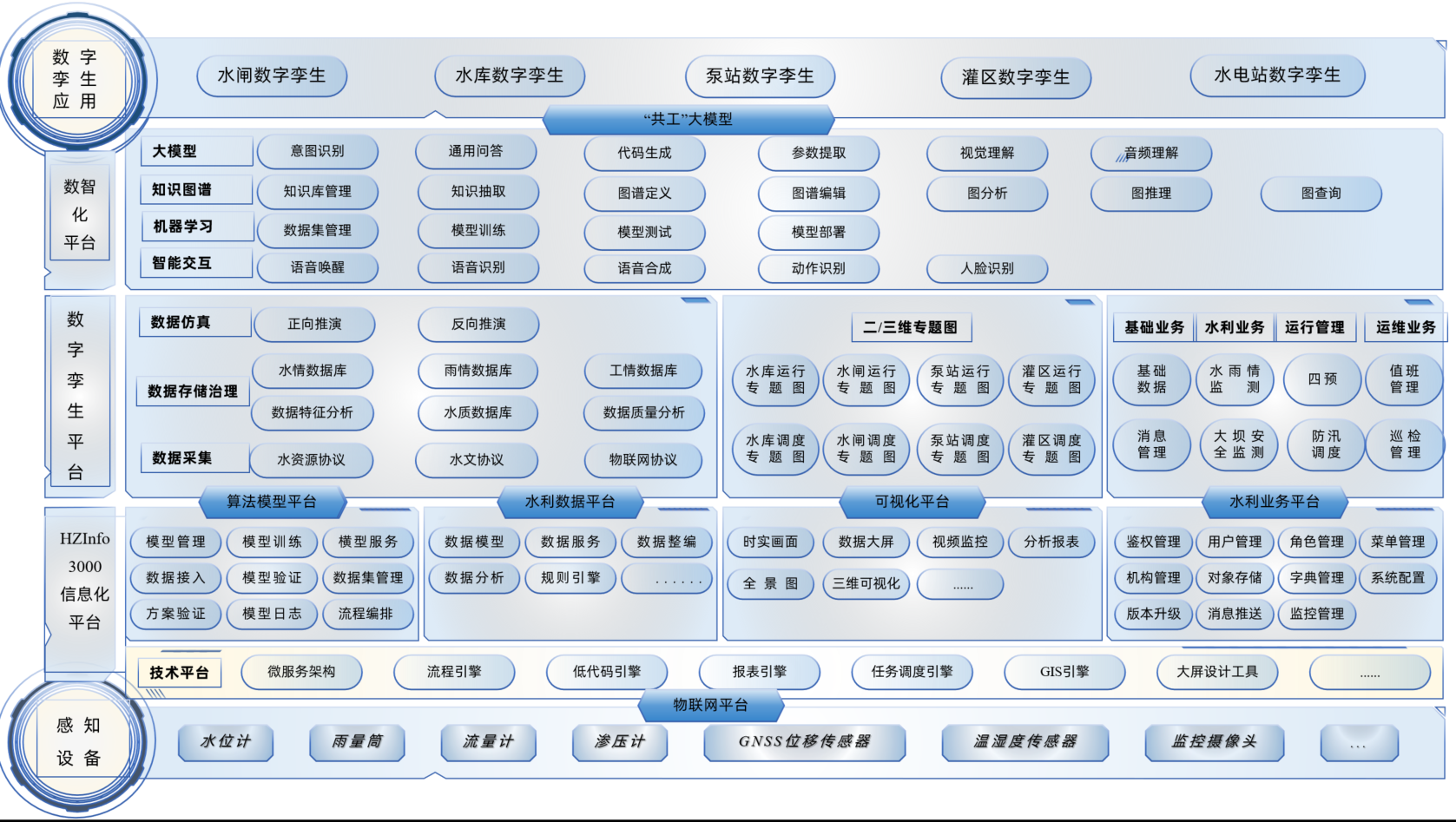 数据整合与共享:平台全面整合水利基础数据、监测数据、业务管理数据等,构建共享共用的数据底板,实现水利全要素数字化映射和数据全生命周期治理。